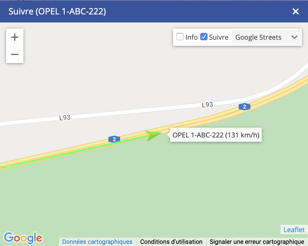 L’historique du traceur est affiché sur la carte. Cliquez sur un point pour avoir plus de détails.